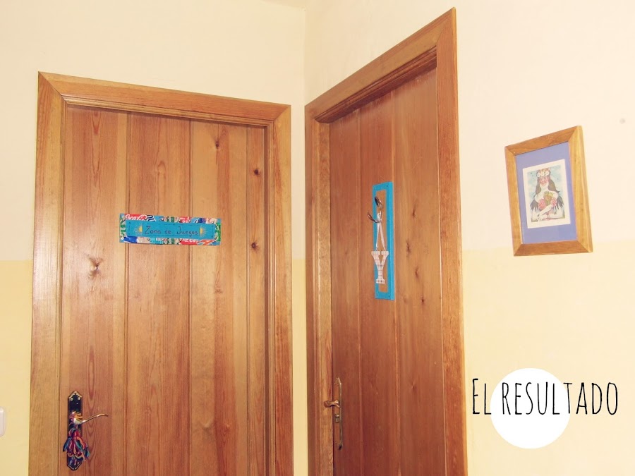 Con las pinturas a mano y el destornillador, aproveché la ocasión para dar color a los nombres de las habitaciones que al ser de un color muy parecido al de las puertas, si no iguales, no destacaban tanto como quería en un primer momento.