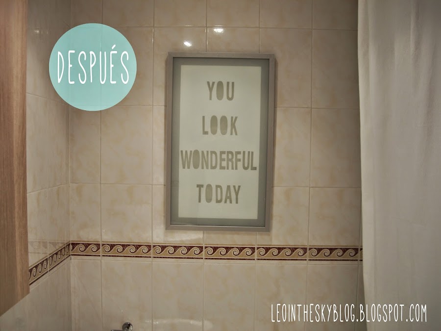 Llevaba tiempo pensando en qué podía hacer para utilizar esta puerta y el otro día por fin me decidí a darle un nuevo uso, ¿cuál? pues un cuadro con una frase que me guste ver cada mañana cuando salgo de la ducha :)