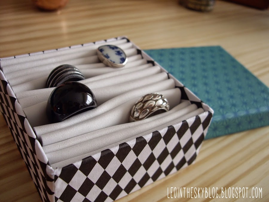 Como la iba a utilizar para guardar los anillos, pensé que estaría bien tenerlos colocaditos una vez abierta la caja y no todos revueltos y se me ocurrió utilizar una lámina de foam del ancho de la caja y doblarla así: