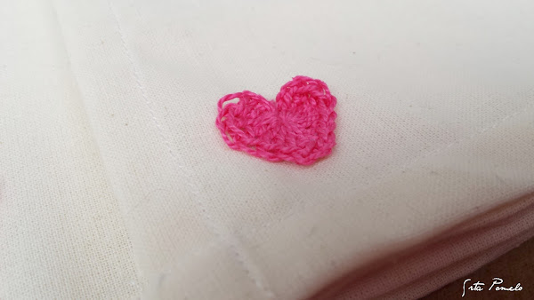 Para rematar, he colocado corazones de crochet en las esquinas de las servilletas para darle ese toque amoroso que se requiere para ese día tan especial. Para aprender a hacer estos corazones, os recuerdo el tutorial aquí.