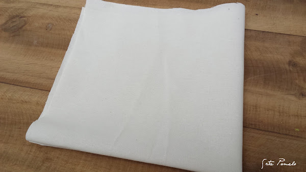 El procedimiento es el siguiente. Cortamos la tela a la medida deseada, en mi caso es de 50x50 cm (teniendo en cuenta que por cada lado se va a disminuir 2 cm para cada dobladillo, es decir, que el tamaño final será de 46x46 cm).