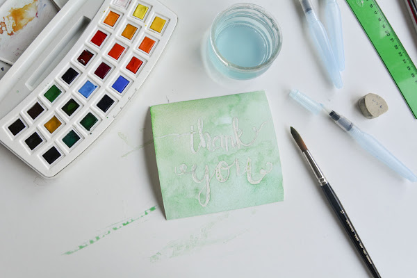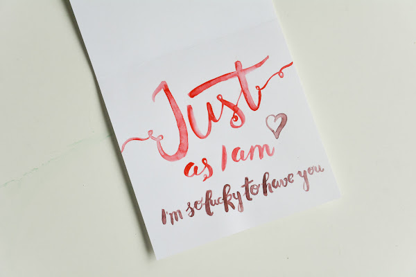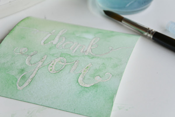 El mensaje interior lo he pintado también con las acuarelas y el pincel, pero con muy poquito agua para no estropear la cartulina, que no absorve tanto como el papel de acuarelas y se deforma con la humedad.