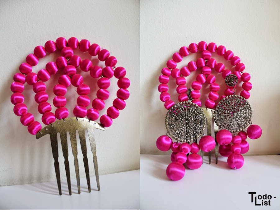 1) El primer año hice los pendientes fresas a conjunto con la peineta. Tenía ya el traje pero no los complementos y pasando por una tienda la vi y me gustó. Allí mismo me ofrecían hacerme los pendientes pero las opciones que me daban no me gustaban y decidí que los haría yo misma.