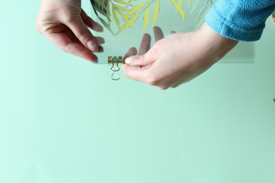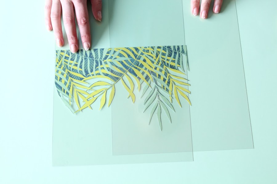 2 Paso: marcaremos el centro del acetato para colocar nuestro motivo decorativo en medio de los dos.