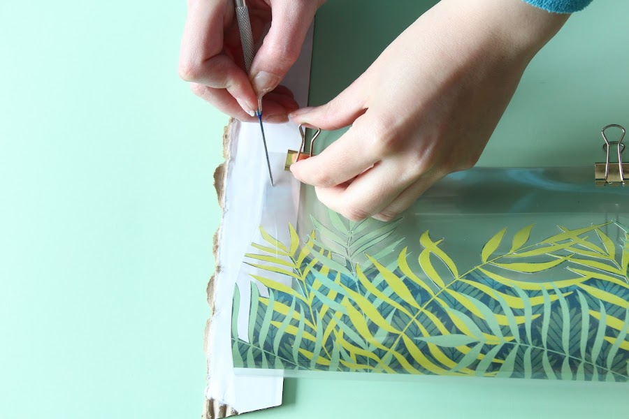 4 Paso: Haremos unos agujeros para que sea más fácil el cosido.