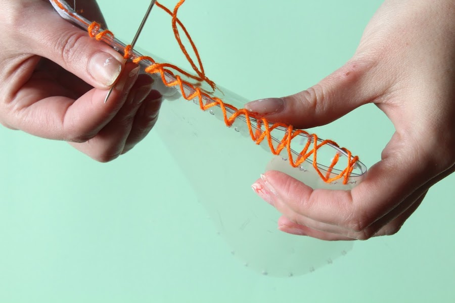 6 Paso: cosemos los laterales con un hilo de bordar.