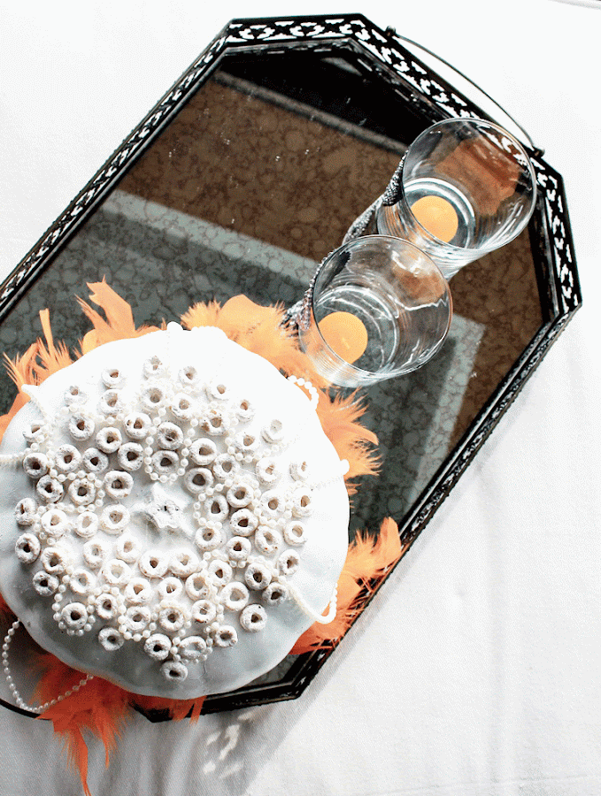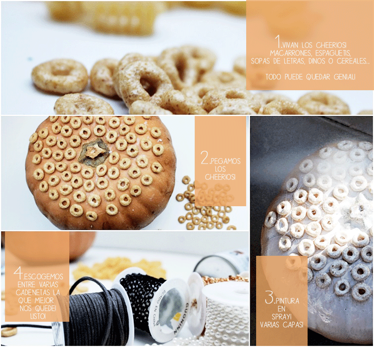 Así que, hoy dos DIY por uno! Vasos tealigh a lo calavera+ Calabazas con ell toque de las plumas, los brillantitos de los vasos (son de esos de poner en las uñas! jajaja!), y las perlas en la calabaza, nos parece que le dan un toque diferente a esta ambientación de Halloween, no os parece?? Por otro lado... Quién diría que son Cheerios los aritos de la calabaza?? jajaja! Un día no muy lejano, vamos a contaros lo que realmente pasa cuando se intenta pegar un cheerio... Los que los hayáis probado, imaginamos que lo saben!!! Son pegajosos!! Te quedas pegada! Una auténtica pesadilla, en serio!! Aún así, el resultado y las risas, han merecido la pena... La verdad es que vamos mejorando en los resultados (quién se acuerda ya de nuestro "carvado desastre"... jeje... Nosotras! no!).