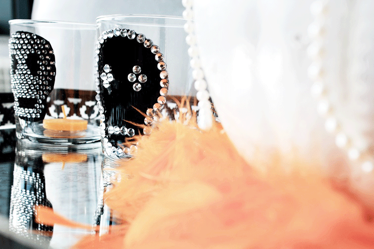 Es el último miércoles del mes, y toca Desafío Love Craft. Este mes, nos proponían que el post tuviese algo "naranja"... Ese era el único requisito... Algo naranja y muy de Halloween! Así que, dándole al coco y buscando ideas por pinterest, finalmente nos decidimos (qué peligro tiene pinterest, que apetece hacerlo todo!), por unos vasos tealigh a lo calavera (además, luego se pueden utilizar sin problemas cuando pase Halloween!) y una calabaza tuneada a lo glam!