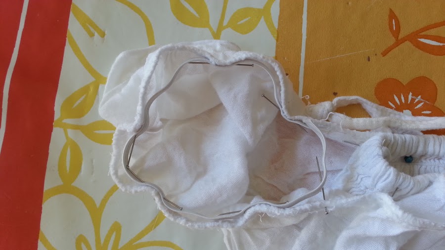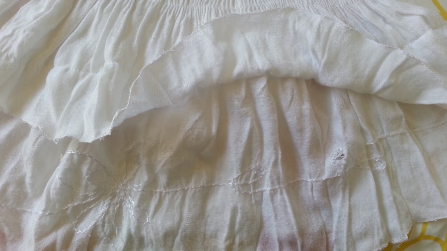 7).Por último cosemos todo el volante alrededor del escote.