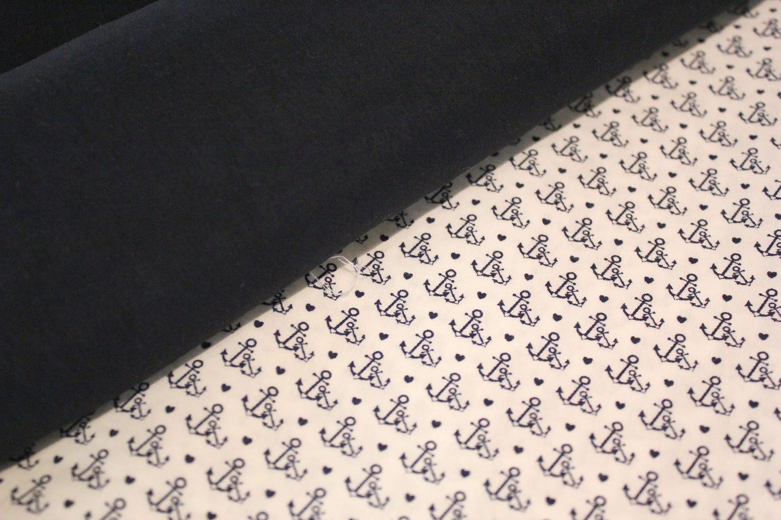 ¿Dónde encontrar esta tela? Yo la he comprado en la tienda física que Ribes & Casals tiene en Madrid. La tela de anclas me costó unos 8 euros el metro y la tela azul la compré de las que tienen en oferta por 1,95 euros/metro. Puedes consultar los tejidos infantiles de su tienda online aquí: http://www.tiendatelas.com/infantil
