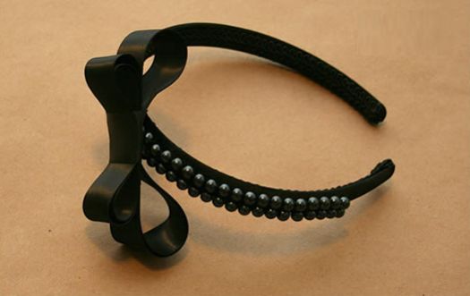 Con el pegamento en silicona, pegamos las 2 filas en un costado de la vincha, como vemos en la imagen mas abajo.