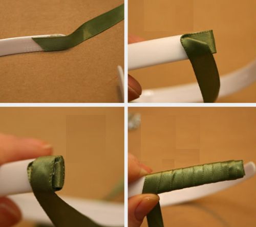 - Usando el pegamento, forramos la vincha con la cinta mas fina.