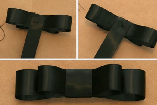 Como vemos en la imagen 1, doblamos la cinta casi formando un moño y costuramos en el medio con algunas puntadas.
