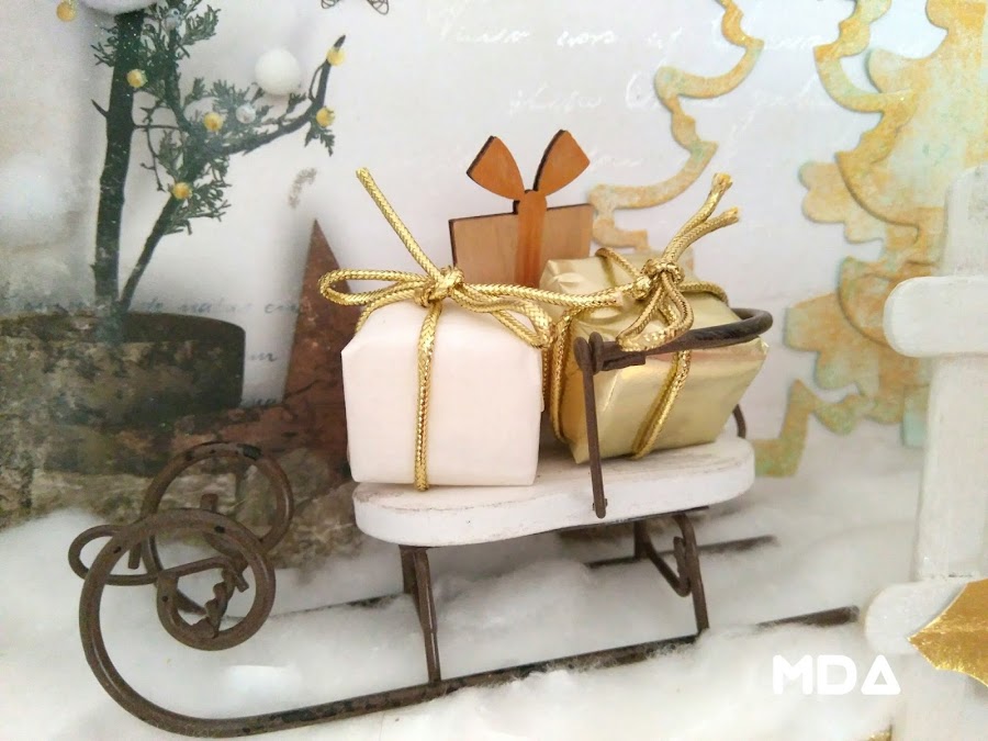 El motivo más simpático es este trineo lleno de regalos que le da ese toque ingenuo y dulce que tiene la época navideña.