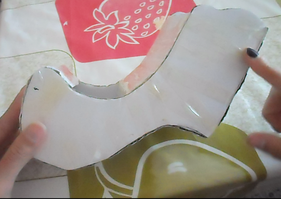 así deberá quedarte ya armado el zapato( yo en el momento no tenia de carrocero y utilice transparente, después ya la reforce con la de carrocero o de papel