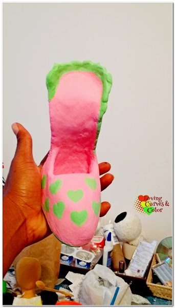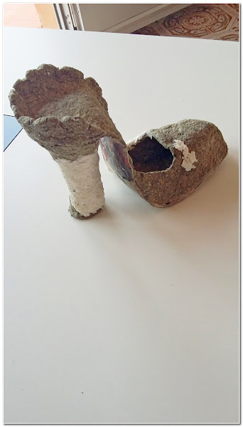 Como amante de los zapatos y de los taconazos en particular no podía faltar uno o unos en mis DIY de papel mache, este es mi primer zapato y por supuesto no será el ultimo, lo he hecho con pasta de papel, sin moldes y con dudas de que me quedara bien, pero como ves quedo precios y espero que a ti te parezca lo mismo.