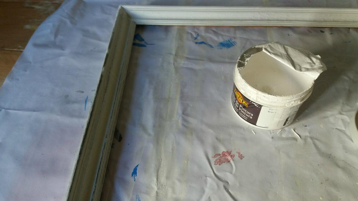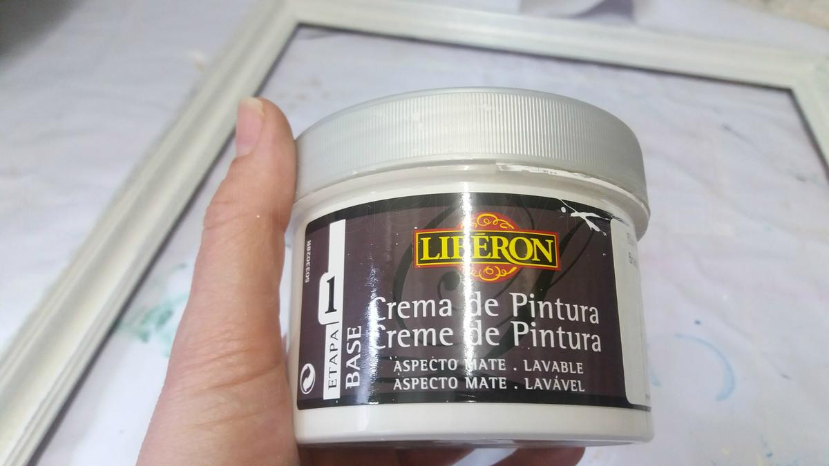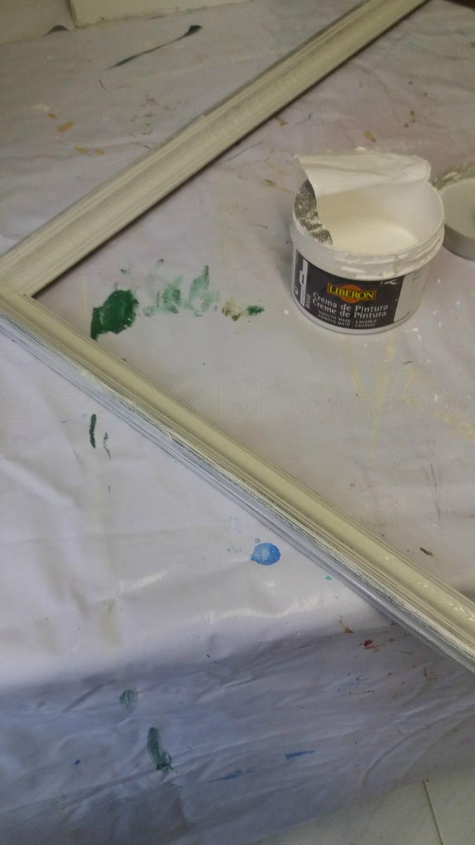 Una vez rehabilitado el marco, lo pinté con crema de pintura Blanco Algodón de Liberón , dándole un par de manos, con un suave lijado entre capa y capa.