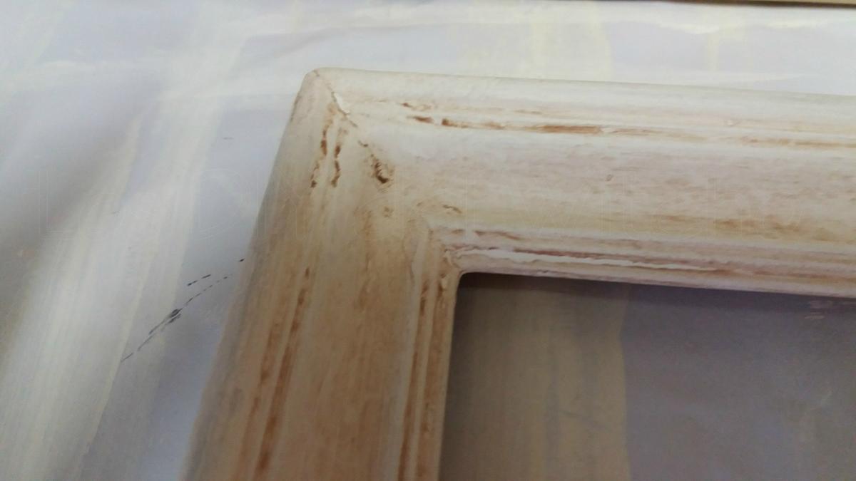 Al secar la pintura, apliqué cera con un paño de algodón a todo el marco para darle un aspecto envejecido.