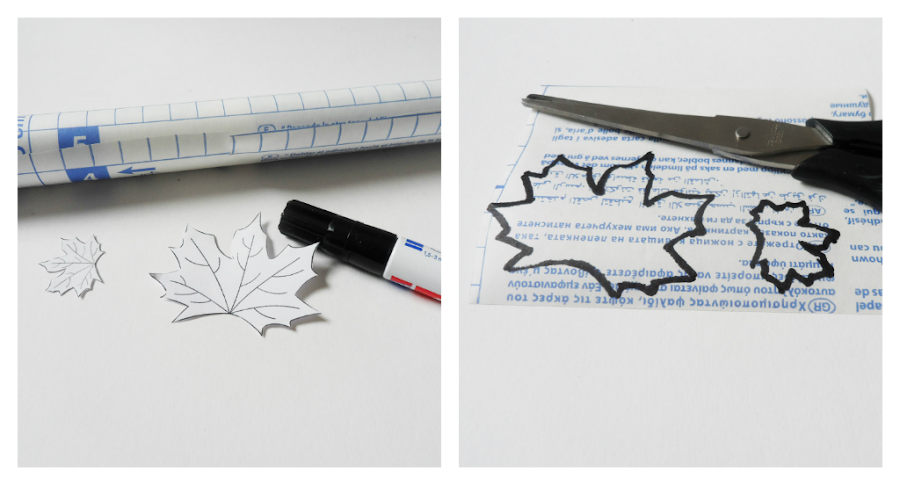 ? Dibujamos en el papel de forrar libros la silueta de las hojas y las recortamos también.