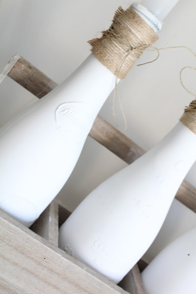 3. Decoramos el caño de la botella con cinta de esparto y cordel.