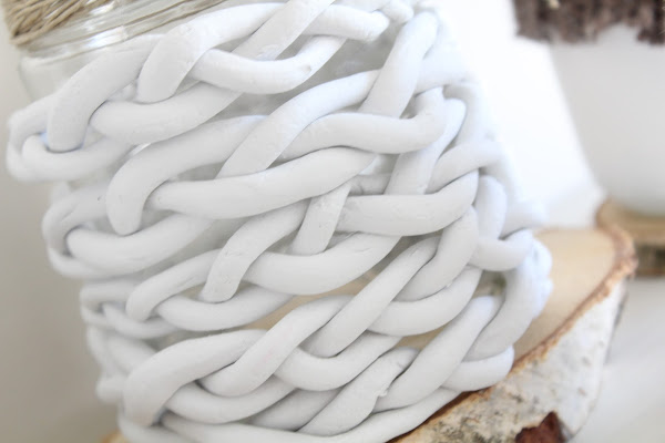 El segundo DIY Porta Vela lo decoraremos con pasta de modelar, creando trenzas que unidas darán la sensación de lana tejida.