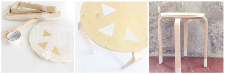 Que el chalk paint es un producto que está de moda lo sabemos todos. Que la pintura en spray es súper cómoda porque es rápida y tiene unos acabados homogéneos, también. Así que imaginaos lo chulo que es mezclar las dos características en una sola pintura.Como os había comentado hace tiempo en la entrada del colour dipping, tenía ganas de hacer algún tutorial con esta técnica. Así que esta era una buena oportunidad para probar el chalk sobre madera. Escogí el mítico taburete de ikea y lo personalicé, con el dipping en las patas y unos pequeños triangulos en el asiento.