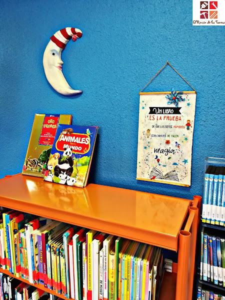 acompañando una bonita librería llena de cuentos