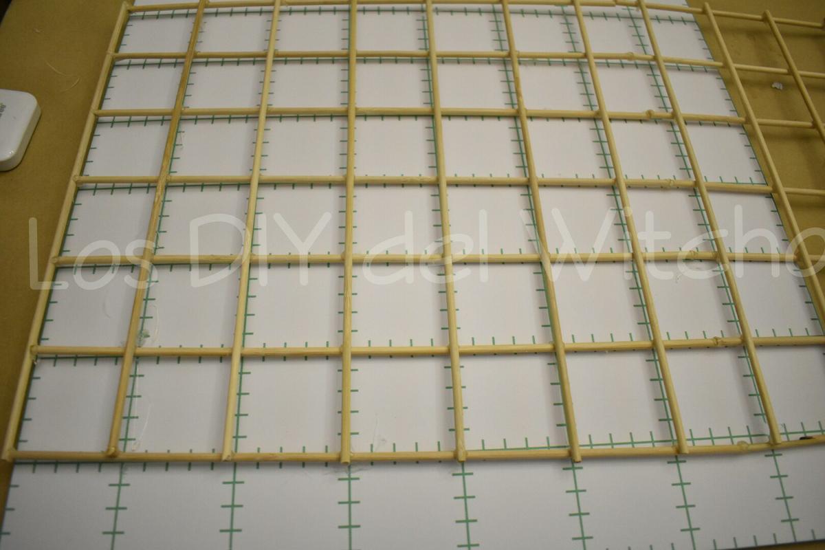Para que los cuadros de la rejilla decorativa queden a la misma medida, he utilizado la trasera de un cartón pluma que viene cuadriculada. Pero se puede utilizar cualquier papel de libreta, en la que se haya dibujado una regla.