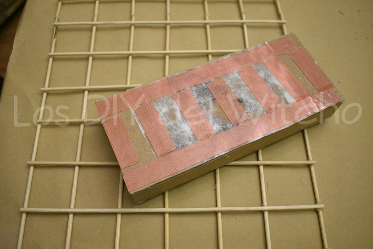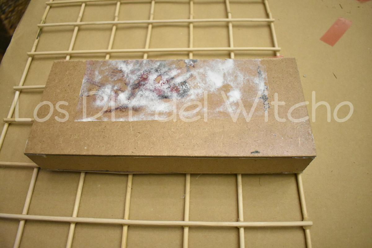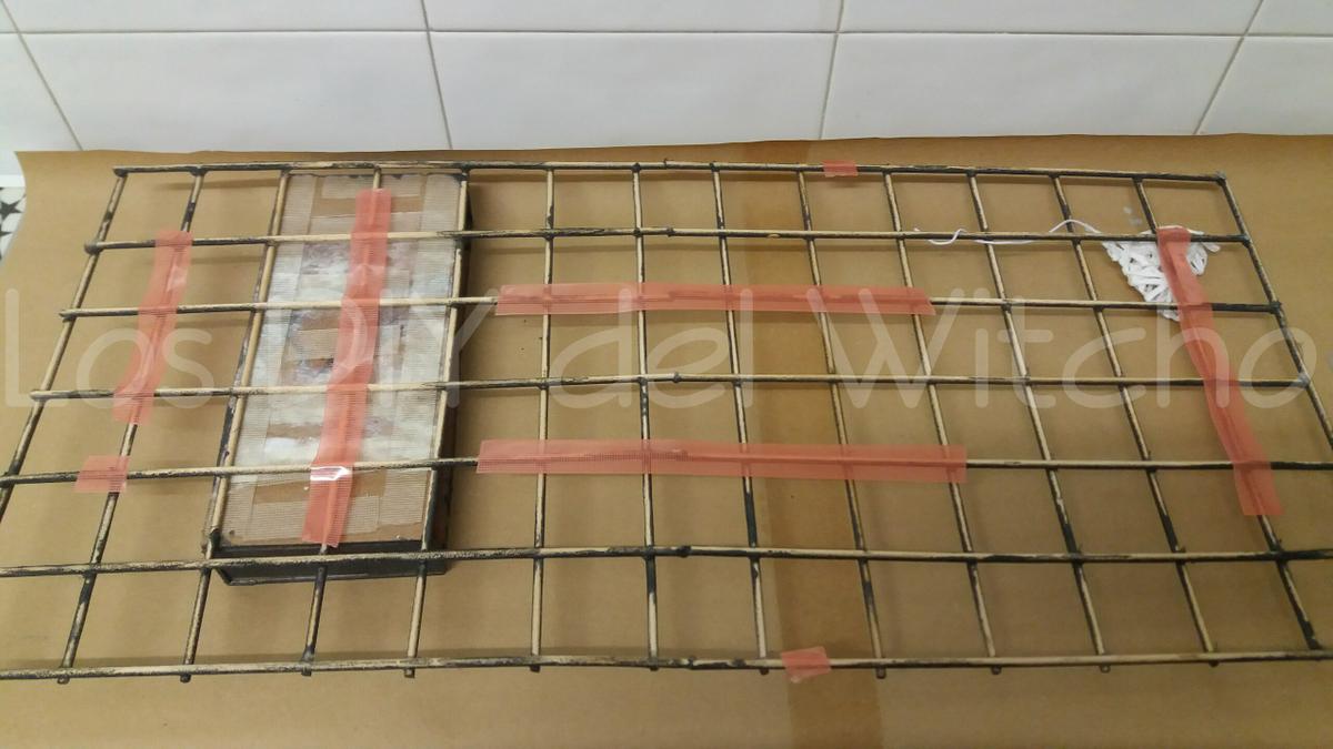 Una vez hecho el cajón, lo pegué a la rejilla decorativa con la misma cinta de Ceys Montack.