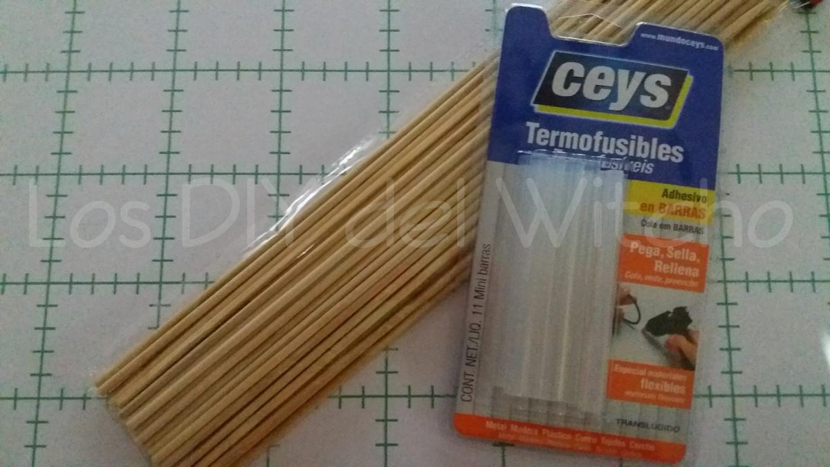 Para unir los palillos unos con otros he utilizado la pistola de silicona caliente con barritas Termofusibles de Ceys.