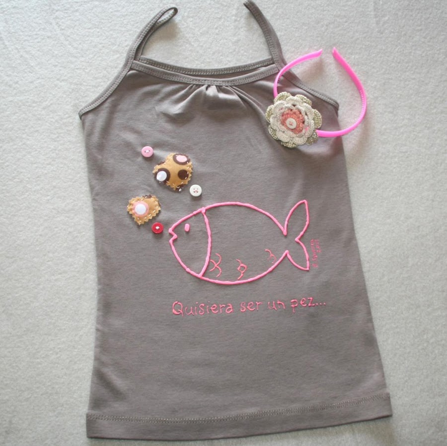 CAMISETA "BURBUJAS DE AMOR" TONOS ROSAS PARA CRISTINA DETALLE DE DIBUJO CONJUNTO CAMISETA+ DIADEMA DETALLE DE DIADEMA RÍGIDA DE CROCHET