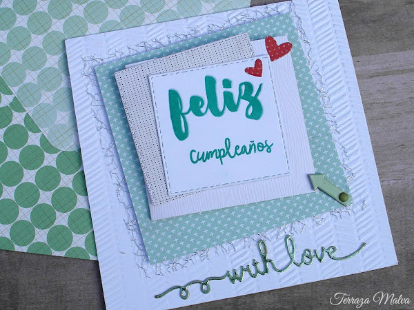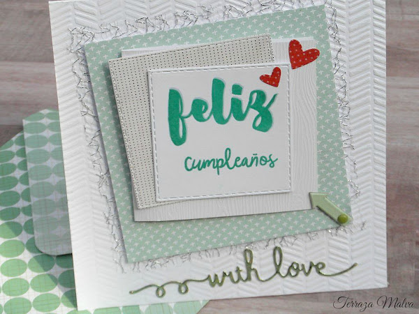 Presento esta tarjeta al reto de febrero de Locas por el Scrap, cuyo requisito es el uso de embossing (yo he utilizado tanto embossing en frío como caliente).