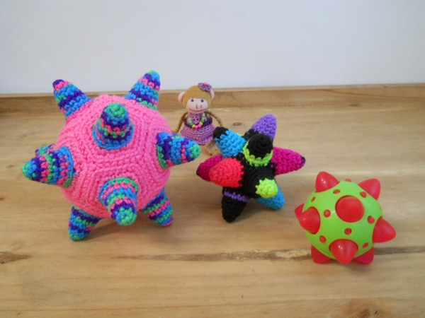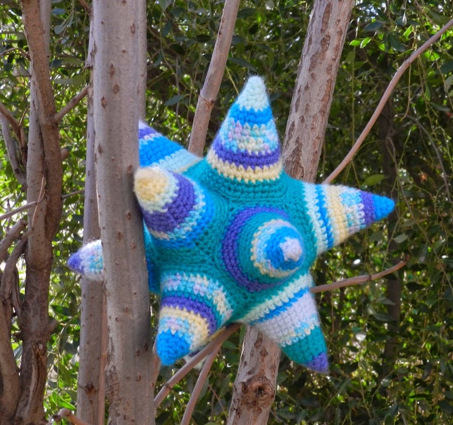 Allá pueden ver el precioso dodecaedro estrellado de Nati, una explicación más detallada, así como las instrucciones para hacer uno. Los hice sin cerrar vueltas.