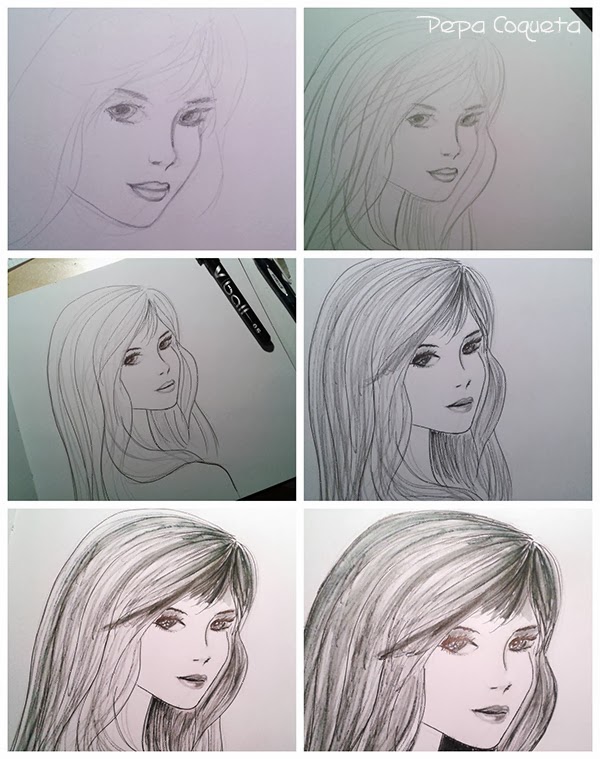 En éste ya me atreví con los ojos y creo que conseguí que no parezca bizca, no? Incluso creo que quedó guapa ;) Aquí sí, es sólo lapices... y un pelín de tinta.