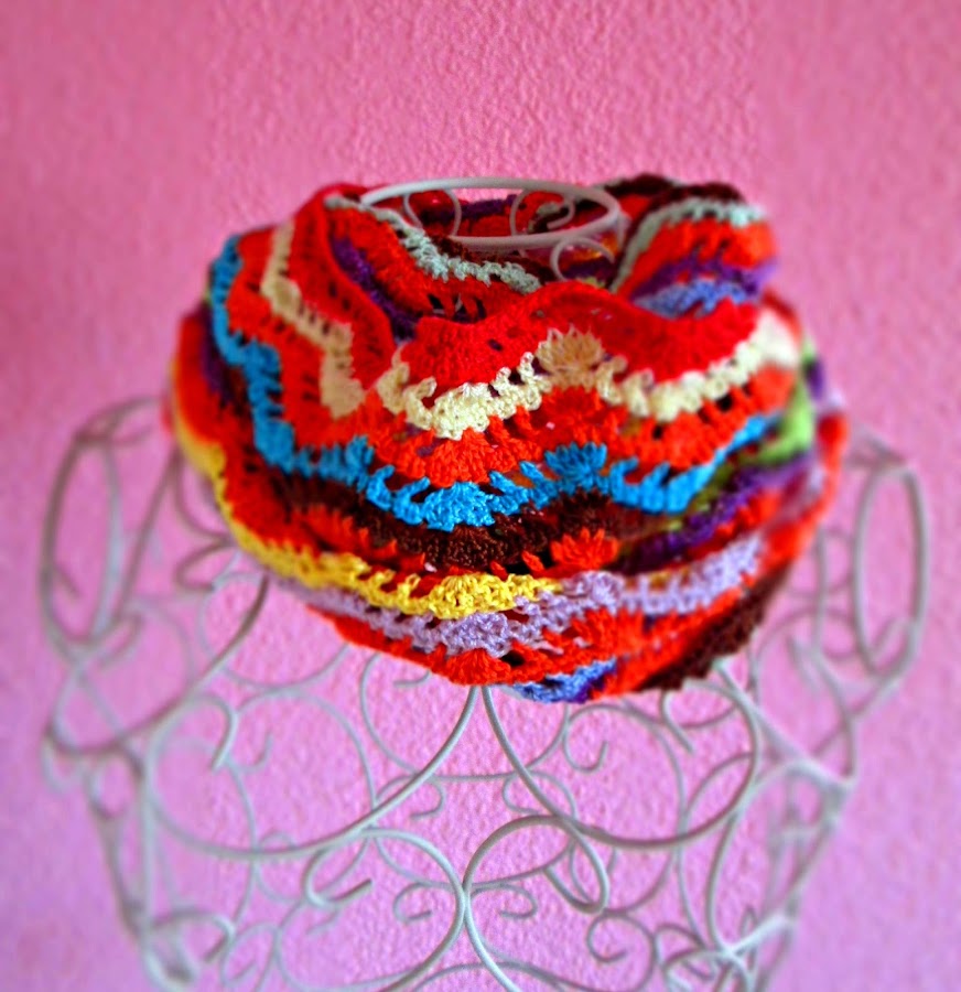 Esta tejido a modo de ondas, y es un patrón muy sencillo de hacer.