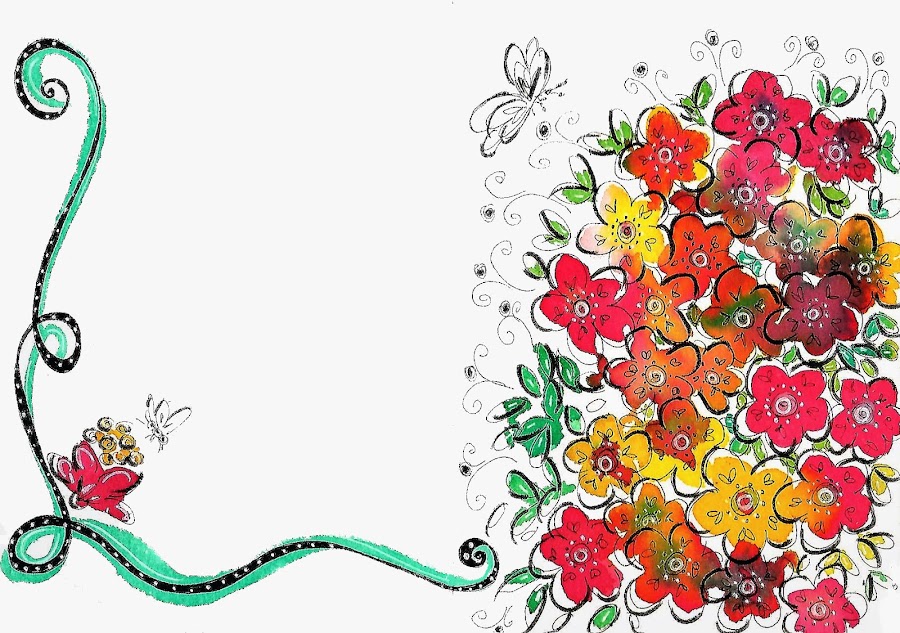 Hem jugat amb aquarel·les líquides o anilines mullant el paper amb aigua i deixant que correguessin els colors. Una vegada tot eixut hem dibuixat amb retoladors punta fina els motius. I postal feta.