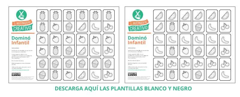 Instrucciones para crear tu dominó imprimible con plantillas blanco y negro.