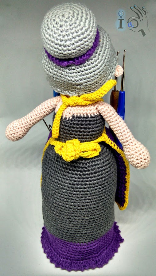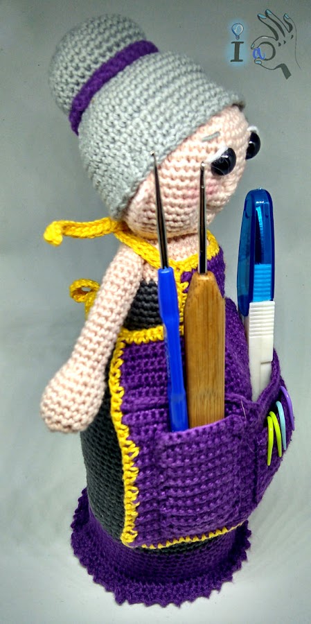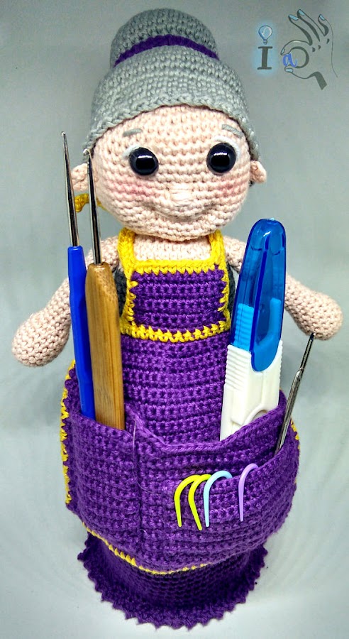 Hoy os quiero presentar a mi ayudante en las tareas de ganchillo: Doña Segismunda, o Segis para las amigas. Se trata de una amigurumi de lo más útil a la hora de ganchillear ya que me hace como las enfermeras en los quirófanos y siempre me tiene a mano las herramientas. Además, hoy día de la mujer trabajadora, quiero que sirva como homenaje a esas mujeres mayores que tanto han trabajado aunque no hayan cotizado a la Seguridad Social...