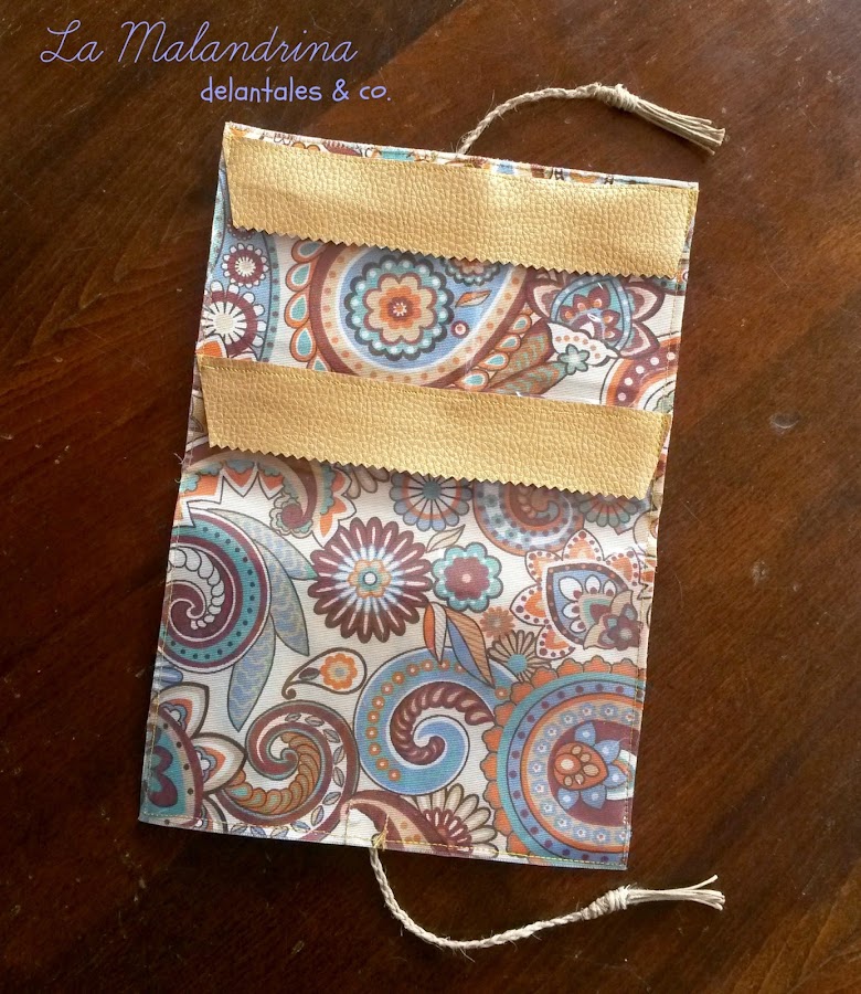 de eco piel dorada(como me gusta :)), forrado de tela y con los bolsillo en plástico trasparente, para que tengamos todo bajo control de un solo vistazo