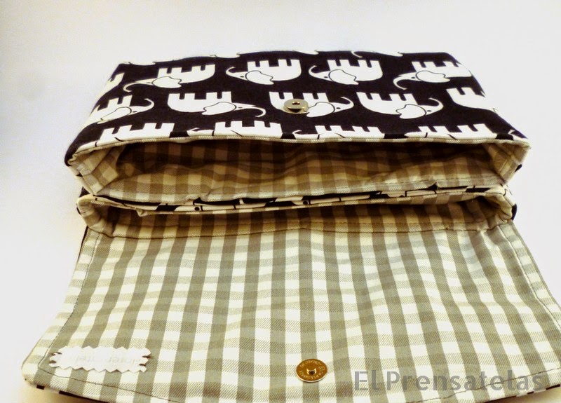 Son dos grandes carteras cosidas juntas y en medio nos queda un bolsillo muy útil para llevar cosas pequeñas y para el cierre, en lugar del velcro que se suele usar para las cosas de los niños, yo le he colocado un broche magnético, más rápido para abrir y cerrar.