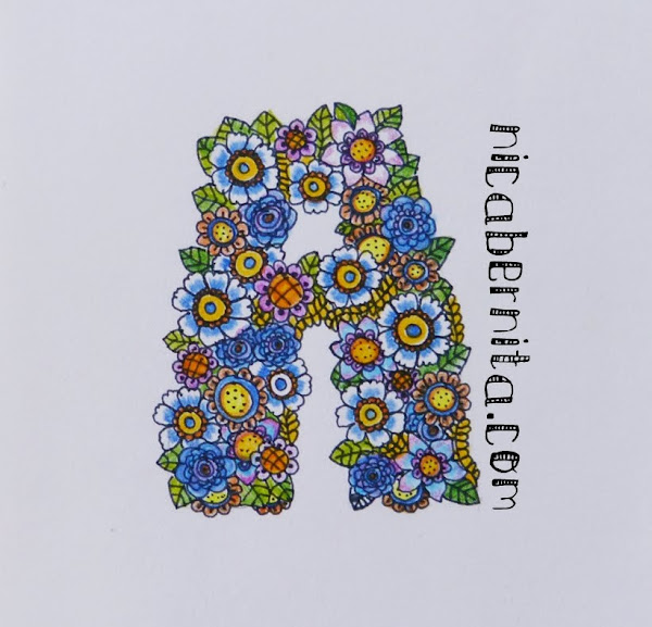El segundo diseño es más recargado y complejo. Para realizarlo he dibujado flores de distinto tipo y he cubierto toda la superficie de la letra con este entramado.