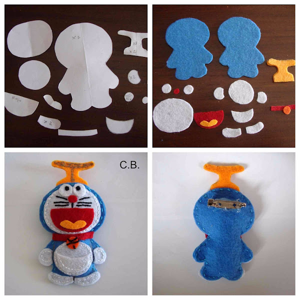 Basta repasar las piezas sobre un dibujo de los muchos que podemos encontrar, recortar primero sobre papel y luego en fieltro. Uní primero las piezas con cola blanca y después con puntadas por el borde y marcando los rasgos.
