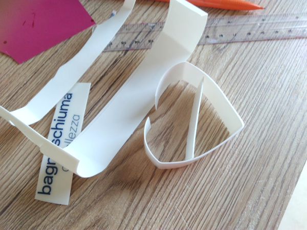 Con este tipo de bote me inspire para realizar una camita, ayudándome de una pistola de curvas, he delineado el contorno o perfil de un lado de la camita, pincho el bote con el cúter y luego corto con tijeras
