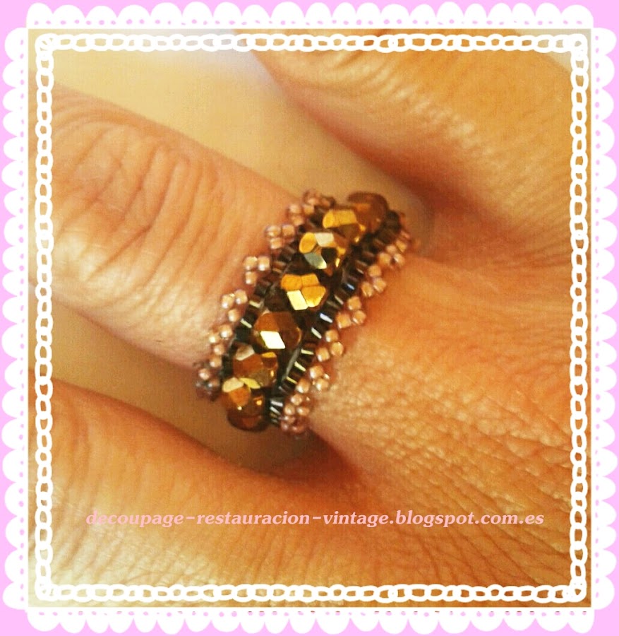Este está hecho con cubos miyuki tejidos con técnica peyote par. Como son todos tan iguales el resultado es como una malla flexible que se ajusta al dedo.