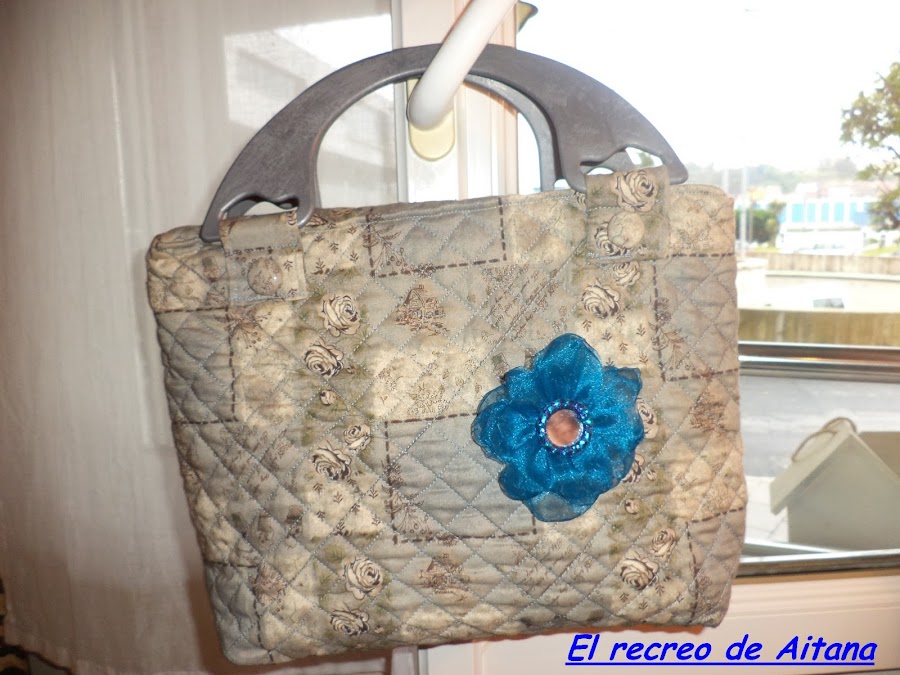 y despues un bolso vintage, todo acolchadito (me esta gustando el asuntejo) con flor de organza,