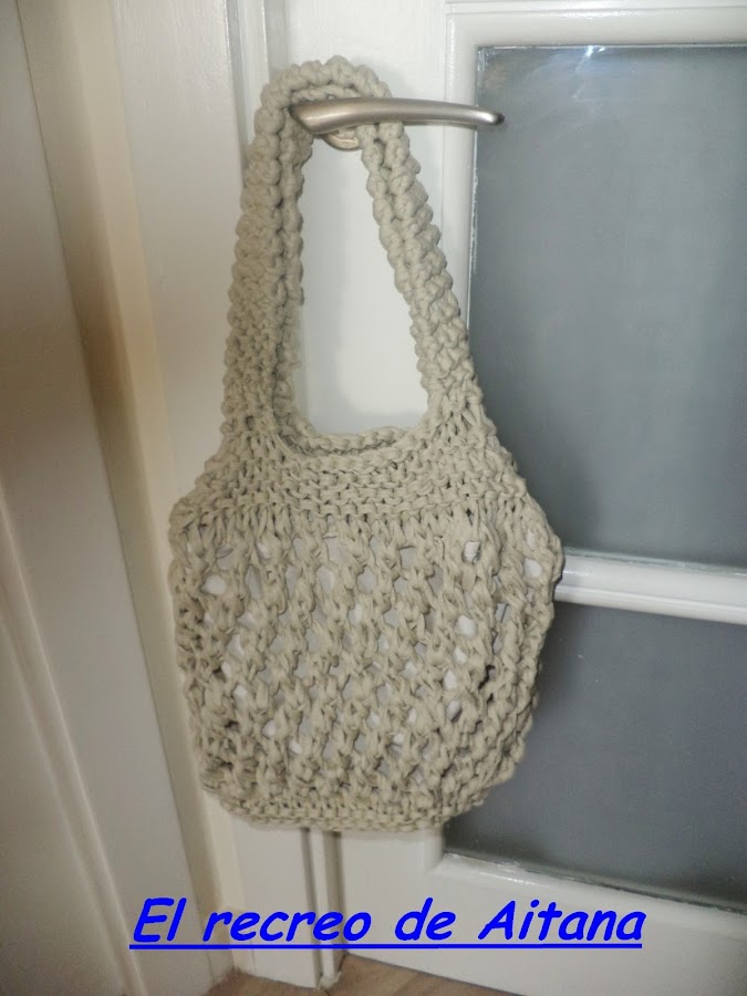 Mi primer bolso de trapillo. Me encanta el punto y el ganchillo, pero este trapillo pesa mogollon, y encima con un super ganchillo o superagujas en bastante duro trabajarlo, menos mal que se adelanta mucho,