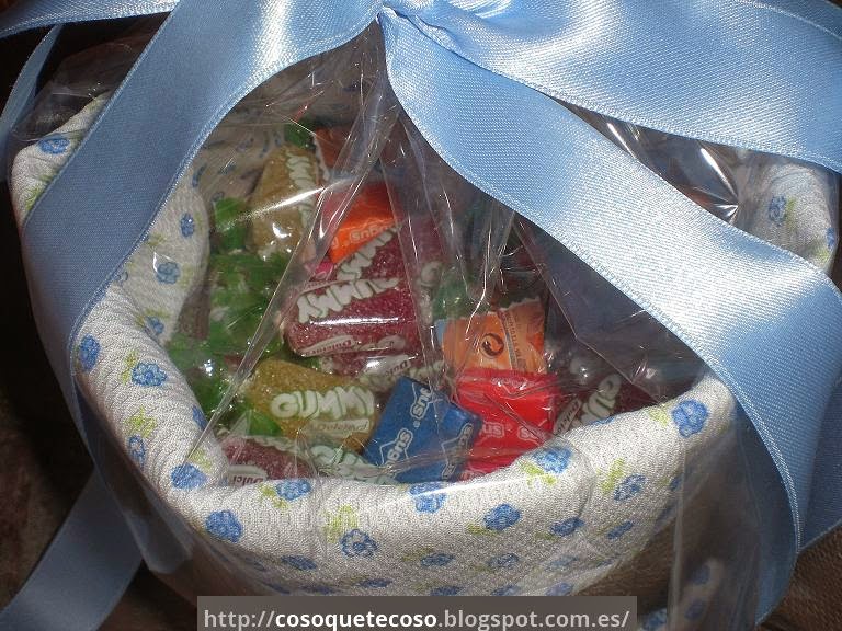 Estas cestas no albergarán patatas o cebollas (bueno, quién sabe) de momento, están llenas de ricos caramelos.