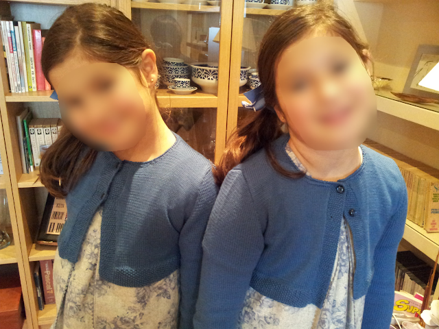 Son mis sobrinas Candela y Helena, 2 monadas de 8 añitos (aunque tengan los brazos muuuuuy largos). Nunca les había hecho nada desde que calceto y ya tocaba. Les encargue estos vestidos ( no los hice yo) y yo les hice las "chaquetitas".