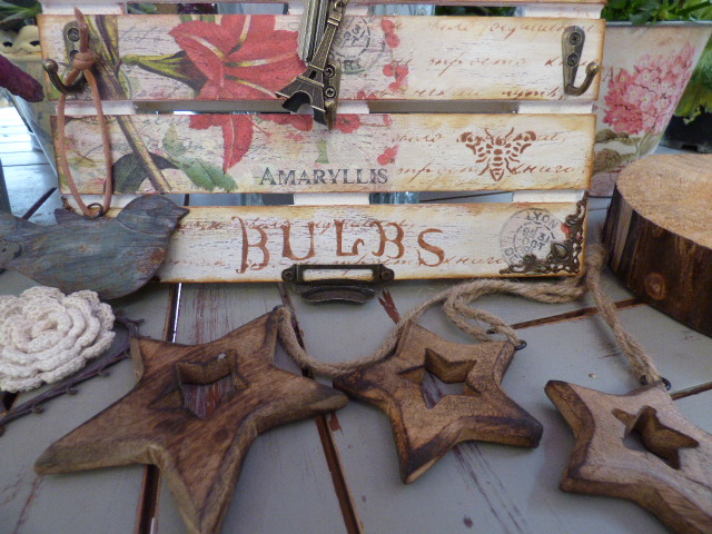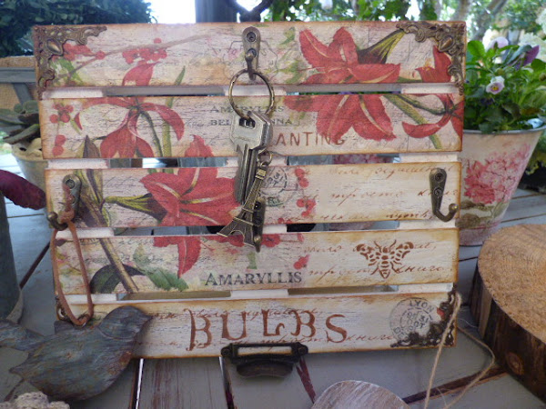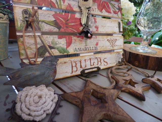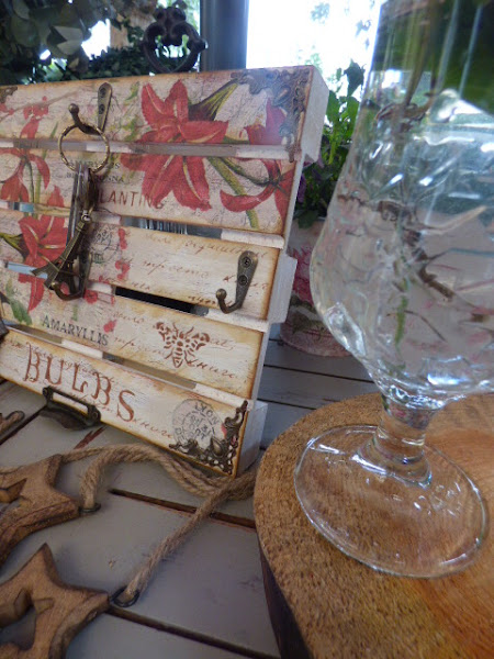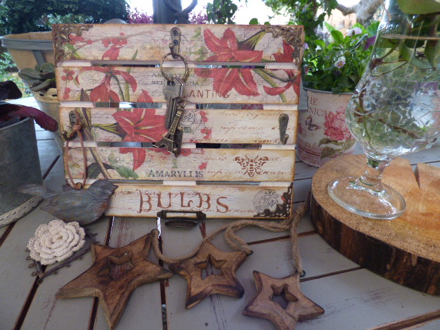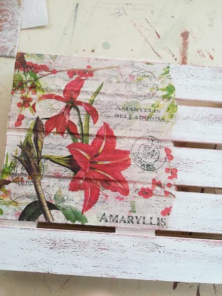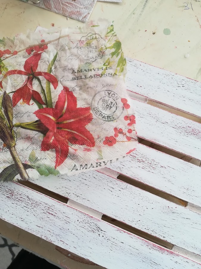 Después barnizar y hacer los estarcidos con esta plantilla que no puede irle mejor a la Amarylis de la servilleta que es un bulbo.
