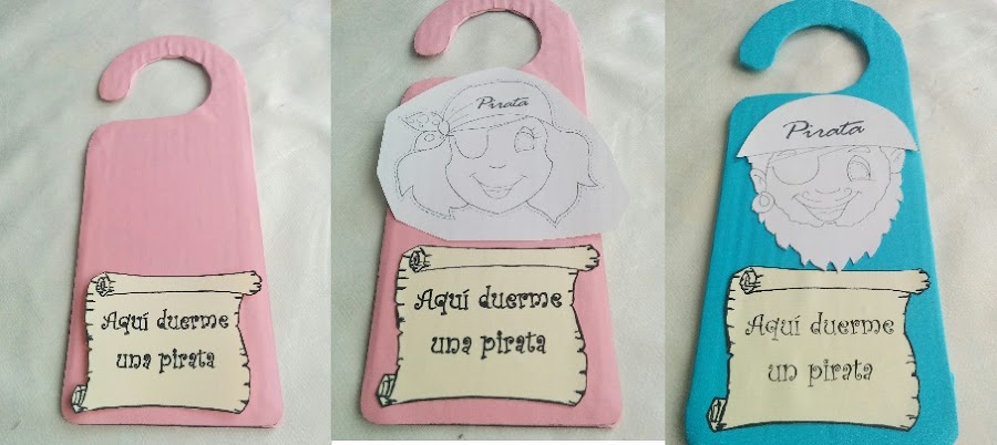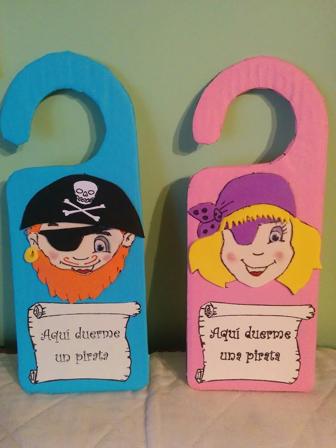 Conclusión que no tenía nada preparado para ninguno de estos retos y el tiempo llegaba a su fin. Como la presión es lo que me inspira, se me encendió una de esas bombillitas que tenemos en el cerebro o serían las musas de Yoli las que me inspiraron porque de repente pensé unos marcadores para las puertas con unos hermosos piratas, ¿para quién? pues para los sobrinos de mi hermana que también son unos incondicionales de mis trabajillos, jajajaja.
